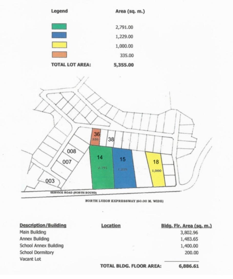 LOT AREA (SQ M) : Total of 5,355 square meters